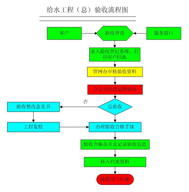 施工單位在工程完工、提交室內(nèi)給水工程竣工資料經(jīng)審查合格后,我公司方可安排現(xiàn)場驗收。